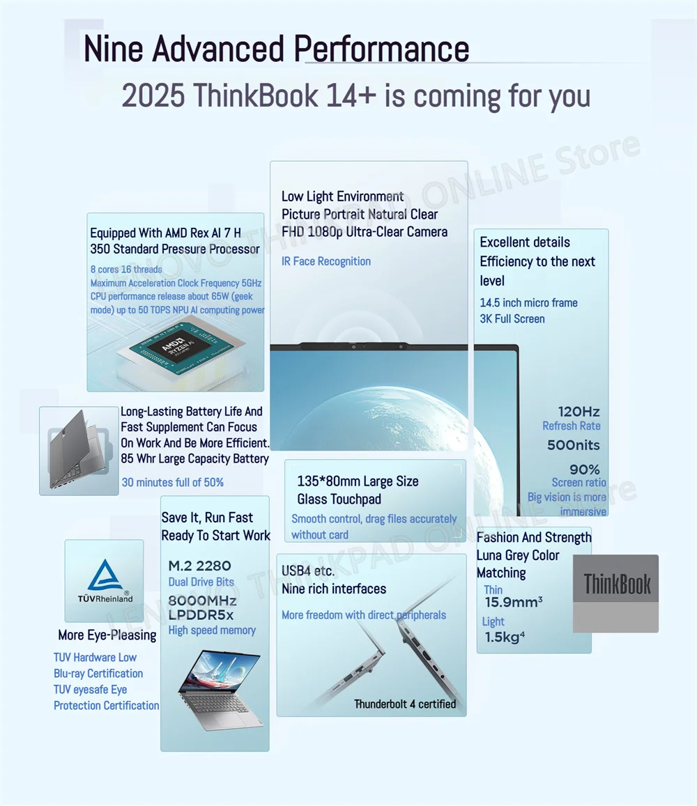 [New Arrivals!!!] Lenovo Laptop Thinkbook 14+ 2025 R7 350 860M / R7 H 260 32G 1TB SSD 14.5'' 3K 120Hz Compact Office Notebook